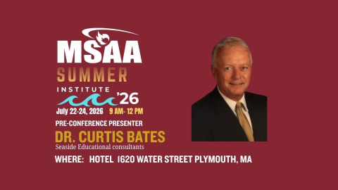 Leading with Soul: Developing Capacity and Ownership as an “Indelible Leader”! July 21st, 2026 9:00 am - 12:00 pm Hotel 1620, PLymouth, MA share this Share this on Twitter Share this on Facebook Share this via email Copy this Register Today Related Events Committee Meetings | Conferences and Workshops Apr 6 2026 MSAA Assistant Principal Leadership Conference National Honor Society Apr 14 National Honor Society Spring Conference Conferences and Workshops May 12 Online Workshop