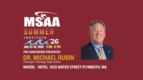From Staff Meetings to Student Success: AI In Action July 21st, 2026 9:00 am - 12:00 pm Hotel 1620, PLymouth, MA share this Share this on Twitter Share this on Facebook Share this via email Copy this Register Today Related Events Committee Meetings | Conferences and Workshops Apr 6 2026 MSAA Assistant Principal Leadership Conference National Honor Society Apr 14 National Honor Society Spring Conference Conferences and Workshops May 12 Online Workshop